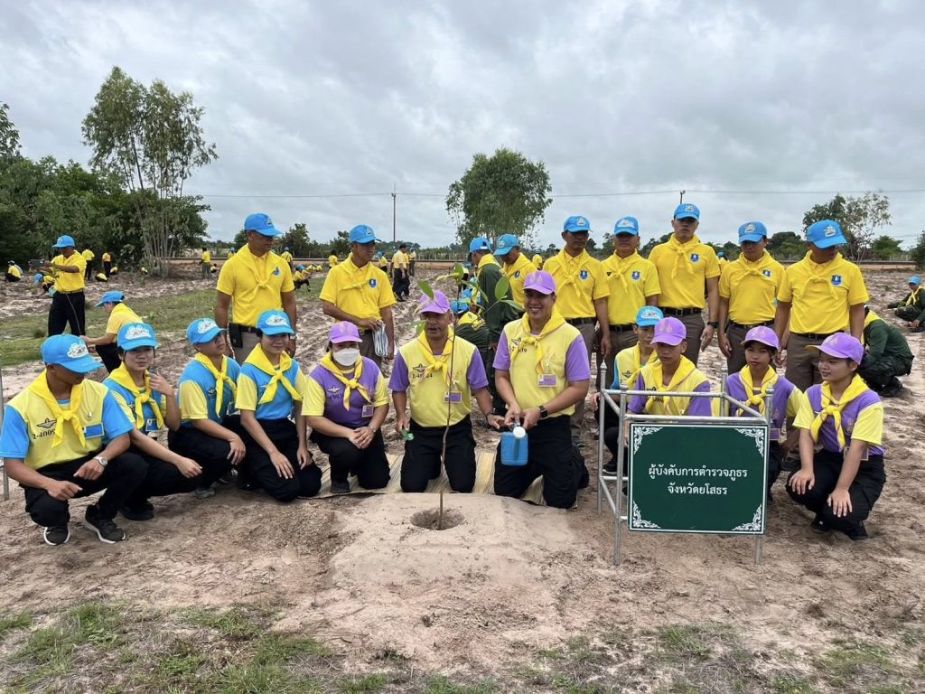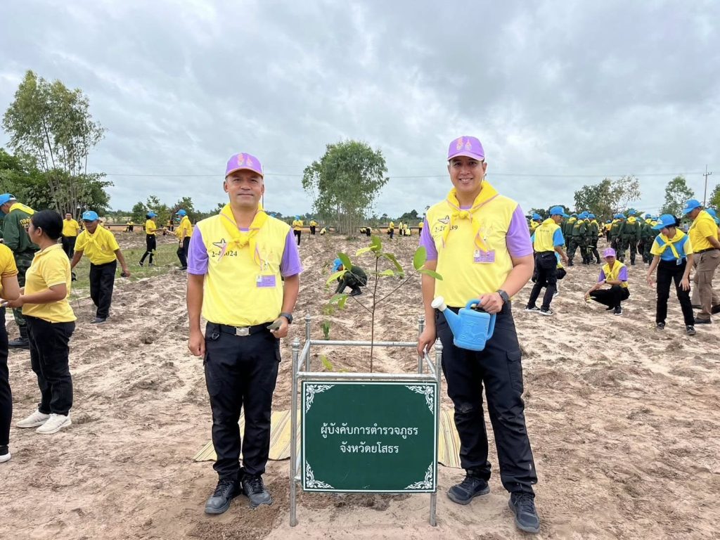 วันที่ 28 ก.ค.2567 เวลา 10.00 น. พล.ต.ต.ภิรมย์ สวนทอง ผบก.ภ.จว.ยโสธร พ.ต.อ.บุรภัช บุรีภักดี รอง ผบก.ภ.จว.ยโสธร มอบหมายให้ พ.ต.อ.ชวภณ จันทเมนชัย ผกก.สภ.ป่าติ้ว พ.ต.อ.สาโรจน์ เพ็ญสูตร์ ผกก.สภ.ค้อวัง เป็นผู้แทน พร้อมข้าราชการตำรวจจิตอาสา ร่วมกิจกรรมจิตอาสาพัฒนาปลูกต้นไม้ เนื่องในโอกาสวันเฉลิมพระชนมพรรษาพระบาทสมเด็จพระเจ้าอยู่หัว 6 รอบ 28 กรกฎาคม 2567 โดยมีนายสุวัฒน์ เข็มเพชร รอง ผวจ.ยโสธร เป็นประธานฯ พร้อมหัวหน้าส่วนราชการ จิตอาสา904 ประชาชนจิตอาสา นักเรียนนักศึกษา ร่วมกิจกรรมฯ ณ พื้นที่สาธารณประโยชน์โนนทราย บ้านศิริพัฒนา ต.น้ำอ้อม อ.ค้อวัง จ.ยโสธร