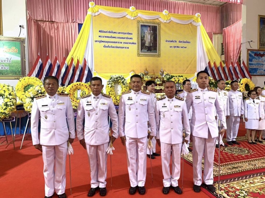 วันที่ 13 ต.ค.2567 เวลา 07.00 น. พ.ต.อ.สาโรจน์ เพ็ญสูตร์ ผกก.สภ.ค้อวัง พ.ต.ท.ยงยุทธ ภูสมนึก รอง ผกก.(สอบสวน)ฯ พร้อมด้วยข้าราชการตำรวจ ตำรวจจิตอาสา สภ.ค้อวัง ร่วมพิธีทำบุญตักบาตร วางพวงมาลา น้อมรำลึกในพระมหากรุณาธิคุณพระบาทสมเด็จพระบรมชนกาธิเบศร มหาภูมิพลอดุลยเดชมหาราช บรมนาถบพิตร “วันนวมินทรมหาราช” 13 ตุลาคม 2567 ณ หอประชุมที่ว่าการอำเภอค้อวัง อ.ค้อวัง จ.ยโสธร