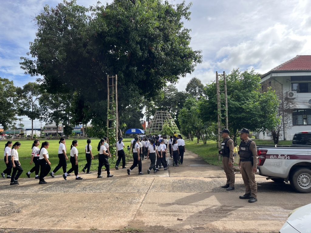วันที่ 26 มิ.ย.2567 แต่เวลา 07.30 น. พ.ต.อ.สาโรจน์ เพ็ญสูตร์ ผกก.สภ.ค้อวัง พ.ต.ท.ศักดิ์สมบูรณ์ ขุนพรหม สวป.สภ.ค้อวัง พ.ต.ต.อดุลย์ กลิ่นศรีสุข สว.สส.สภ.ค้อวัง พร้อมร้อยเวรป้องกันปราบปราม ร้อยเวรจราจร สายตรวจรถยนต์ และข้าราชการตำรวจในสังกัด ร่วมรักษาความปลอดภัยอำนวยความสะดวกการจราจร และร่วมเดินขบวนกิจกรรมรณรงค์ประชาสัมพันธ์เพื่อสร้างการรับรู้เนื่องในวันต่อต้านยาเสพติดโลก พิธีอ่านสารเนื่องในวันต่อต้านยาเสพติด และเผาทำลายยาเสพติด โดยมีนายสราวุธ นามสีลี นายอำเภอค้อวัง เป็นประธานฯ พร้อมหัวหน้าส่วนราชการ องค์กรปกครองท้องถิ่น ครูนักเรียน พี่น้องประชาชน ร่วมกิจกรรมฯ ณ สนามหน้าที่ว่าการอำเภอค้อวัง จ.ยโสธร