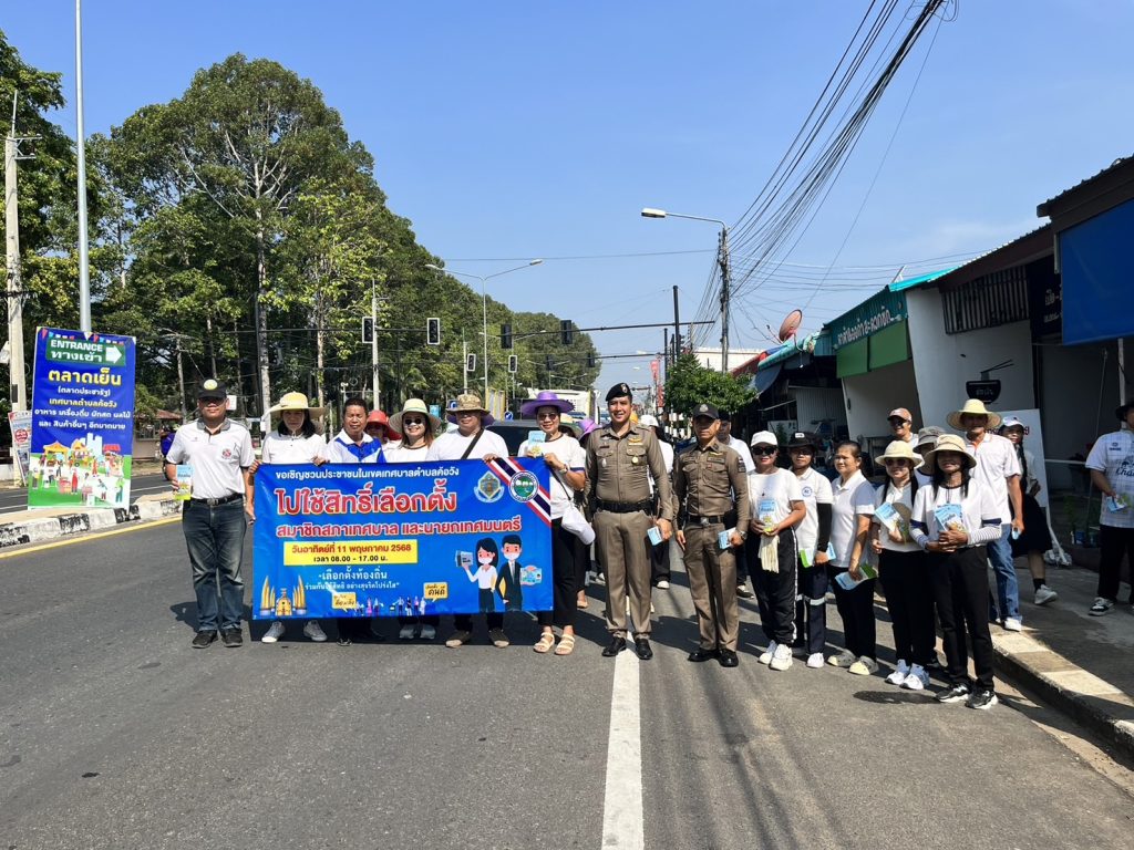 วันที่ 25 เม.ย.68 เวลา 08.30 น. พ.ต.อ.สาโรจน์ เพ็ญสูตร์ ผกก.สภ.ค้อวัง พ.ต.ท.คมเพชร ปกติ รอง ผกก.ป.ฯ พ.ต.ท.ศักดิ์สมบูรณ์ ขุนพรหม สวป.ฯ พร้อมร้อยเวรป้องกันปราบปราม ร้อยเวรจราจร เจ้าหน้าที่ตำรวจจิตอาสา สภ.ค้อวัง ร่วมกิจกรรมรณรงค์ประชาสัมพันธ์ไปใช้สิทธิเลือกตั้งสมาชิกสภาเทศบาล และนายกเทศมนตรี จัดโดยคณะกรรมการการเลือกตั้งเทศบาลตำบลค้อวัง ทั้งนี้ได้จัดกำลังเจ้าหน้าที่อำนวยความสะดวกการจราจรและรักษาความปลอดภัย บริเวณถนนค้อวัง-ยางชุมน้อย และภายในเขตเทศบาลตำบลค้อวัง
