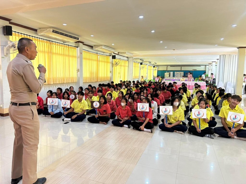 วันที่ 12 ก.ค.2567 เวลา 09.00 น.พ.ต.อ.สาโรจน์ เพ็ญสูตร์ ผกก.สภ.ค้อวัง มอบหมายให้ พ.ต.ท.ศักดิ์สมบูรณ์ ขุนพรหม สวป.ฯ ร่วมกิจกรรม ทู บี นัมเบอร์วัน โรงเรียนค้อวังวิทยาคม พร้อมนี้ได้ให้ความรู้กับนักเรียนเรื่องข้อกฎหมายและพิษภัยของบุหรี่ไฟฟ้า ตามนโยบาย ผบ.ตร.