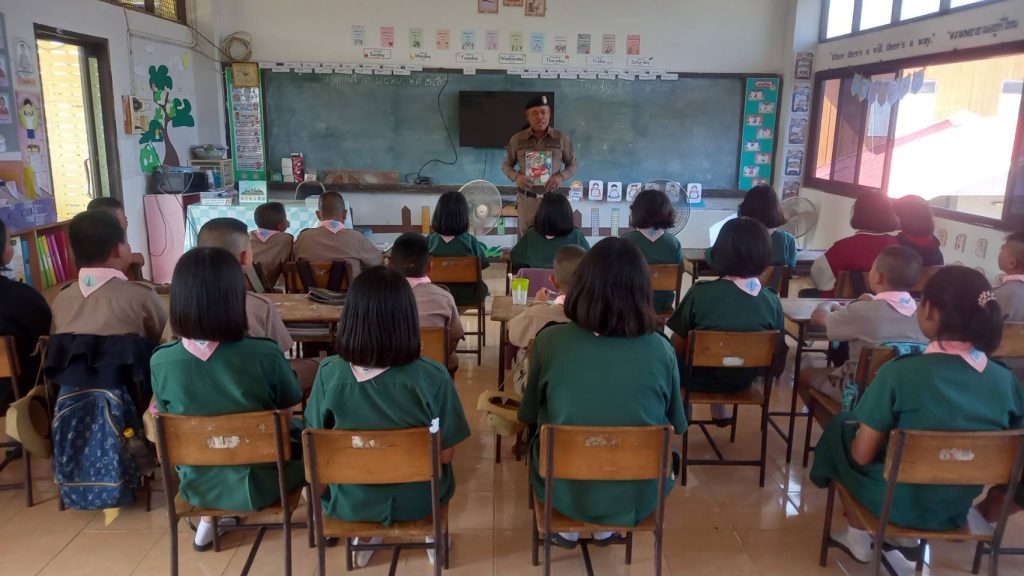 วันที่ 3 ม.ค.2568 เวลา14.30 – 15.30 น. พ.ต.อ.สาโรจน์ เพ็ญสูตร์ ผกก.สภ.ค้อวัง มอบหมายให้ ร.ต.ท.นพปฎล บุญเต็ม รอง สว.(ป.)ฯ ปฏิบัติหน้าที่ครูตำรวจ D.A.R.E. เข้าสอนตามโครงการ การศึกษาเพื่อต่อต้านการใช้ยาเสพติดในเด็กนักเรียน (D.A.R.E. ประเทศไทย)ภาคเรียนที่ 2/2567 ที่ โรงเรียนกุดน้ำใสจานบกน้อย อ.ค้อวังฯ ระดับ ป.5,6 นักเรียน จำนวน 33 คน และได้ให้ความรู้เกี่ยวกับการป้องกันการล่วงละเมิดทางเพศต่อเด็กและสตรี(TICAC),ความรู้เรื่องภัยไซเบอร์ โดยได้รับความร่วมมือจากทางคณะครูและนักเรียนเป็นอย่างดี
