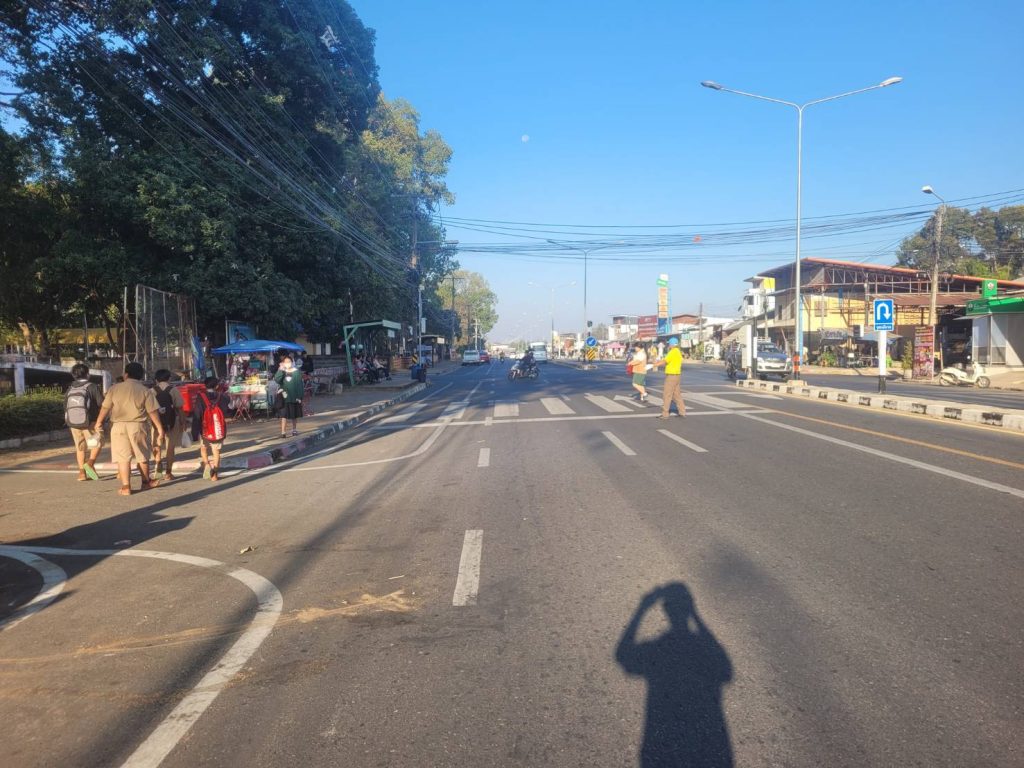 วันที่ 18 ธ.ค.2567 เวลา 07.00 น. – 08.00 น. พ.ต.อ.สาโรจน์ เพ็ญสูตร์ ผกก.สภ.ค้อวัง, พ.ต.ท.เจริญชัย วะดี รอง ผกก.ป.ฯ, พ.ต.ท.ณรงค์ คำบุญ สว.อก.ฯ มอบหมายให้ ร.ต.ต.แหลมสิงห์ เหลือผล รอง สว(ป.)ฯ ปฏิบัติหน้าที่ร้อยเวรจราจร พร้อมด้วย เจ้าหน้าที่ตำรวจจิตอาสาจราจร ร่วมกันอำนวยความสะดวกการจราจร ช่วงเร่งด่วน และจัดการจราจรการจอดรถ ที่บริเวณแยกหน้าโรงเรียนค้อวังวิทยาคม ,หน้าโรงเรียนอนุบาลค้อวัง ,แยกร้านสะดวกซื้อเซเว่น-โลตัส ถนนพลไว-ยางชุมน้อย ต.ค้อวัง อ.ค้อวัง จ.ยโสธร