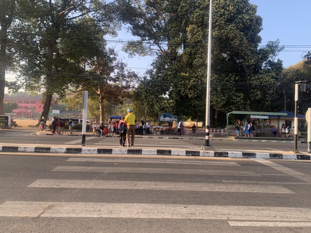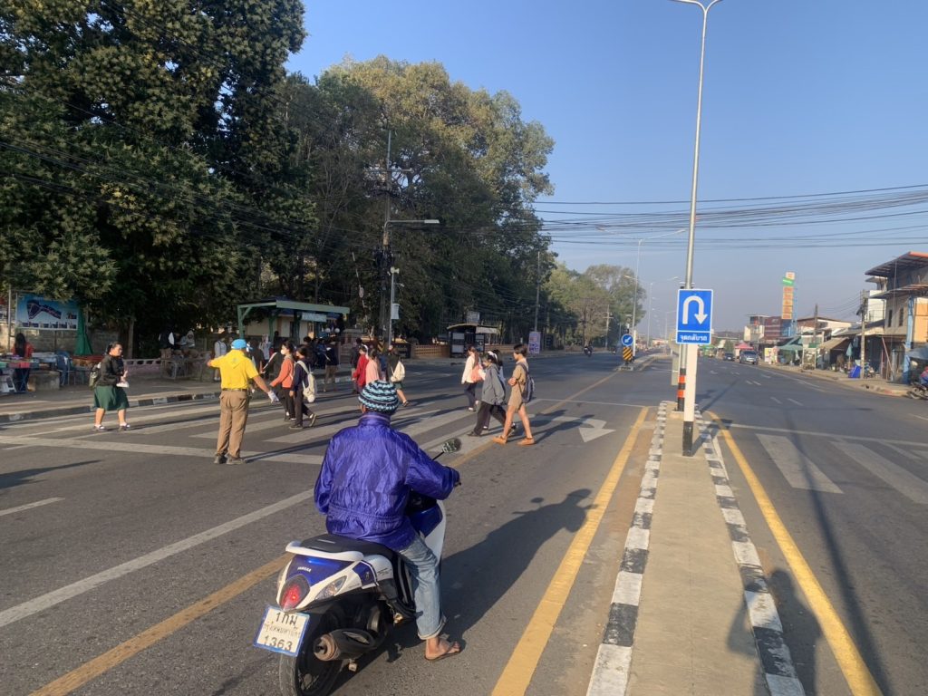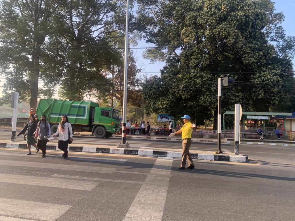 จิตอาสาอำนวยความสะดวกการจราจร และจัดการจอดรถบริเวณแยกหน้าโรงเรียน