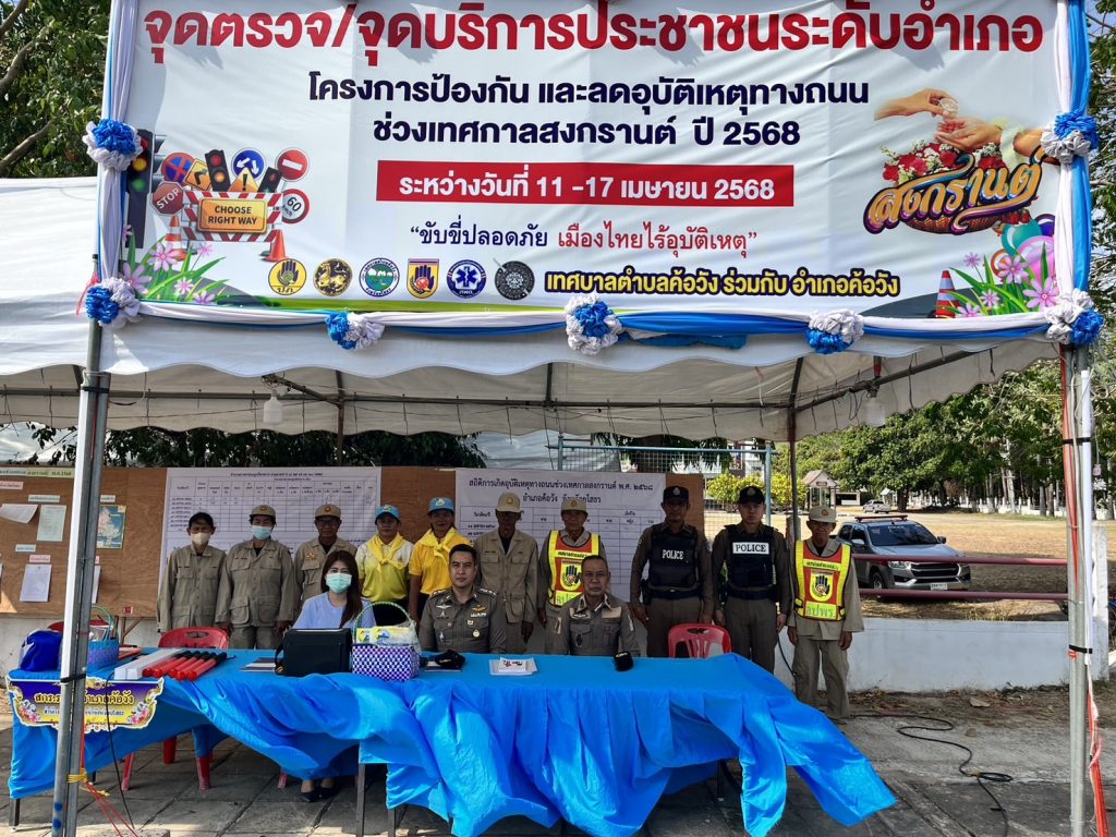 วันที่ 13 เม.ย.2568 เวลา 08.30 น. พ.ต.อ.สาโรจน์ เพ็ญสูตร์ ผกก.สภ.ค้อวัง พ.ต.ท.ศักดิ์สมบูรณ์ ขุนพรหม สวป.ฯ ตรวจเยี่ยมจุดตรวจจุดบริการประชาชนช่วงเทศกาลสงกรานต์ 2568 บริเวณถนนหน้า สภ.ค้อวัง พบเจ้าหน้าที่ตำรวจ สาธารณสุข อปพร. จิตอาสา อยู่ปฏิบัติหน้าที่ ได้กำชับการปฏิบัติและให้กำลังใจเจ้าหน้าที่ในการปฏิบัติหน้าที่