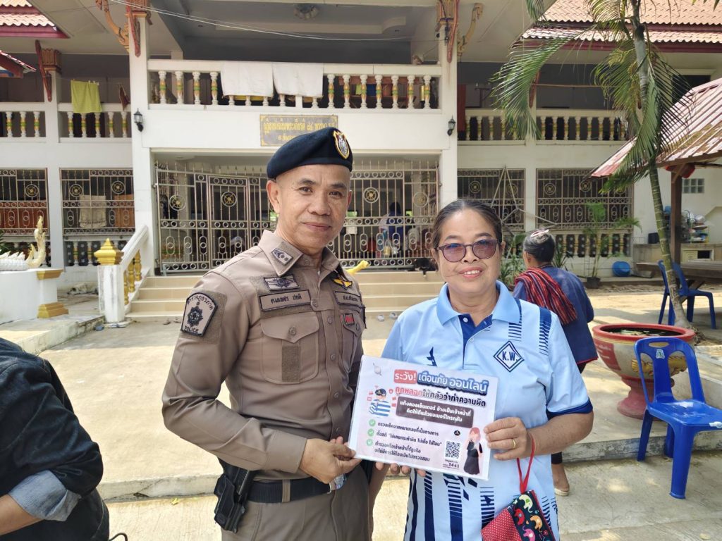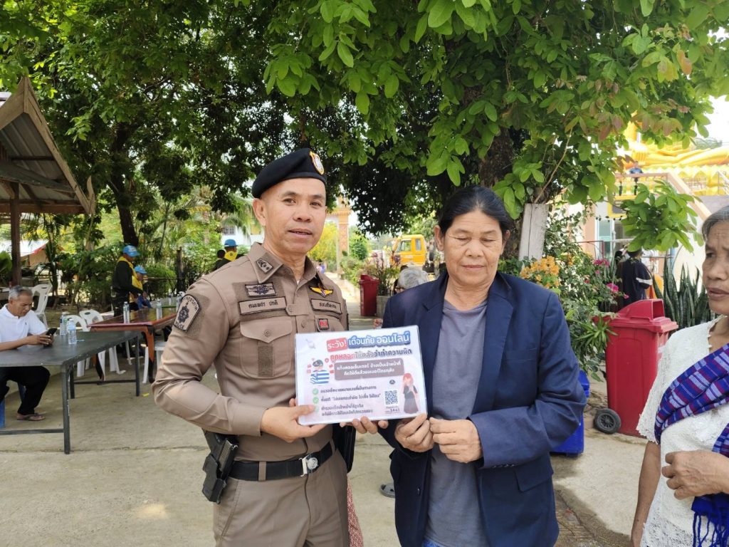 วันที่ 20 มี.ค.2568 เวลาประมาณ 11.30 น. พ.ต.ท.คมเพชร ปกติ รอง ผกก.ป.ฯ , ด.ต.สวัสดิ์ แก้วปัตตะ ผบ.หมู่(ป.)ฯ ปฏิบัติหน้าที่ร้อยเวรป้องกันปราบปราม พร้อมสายตรวจออกประชาสัมพันธ์ 18 กลโกงของมิจฉาชีพที่ใช้ในการหลอกเหยื่อบนโลกออนไลน์ ณ วัดดงมะหรี่ ต.ค้อวัง อ.ค้อวัง จ.ยโสธร