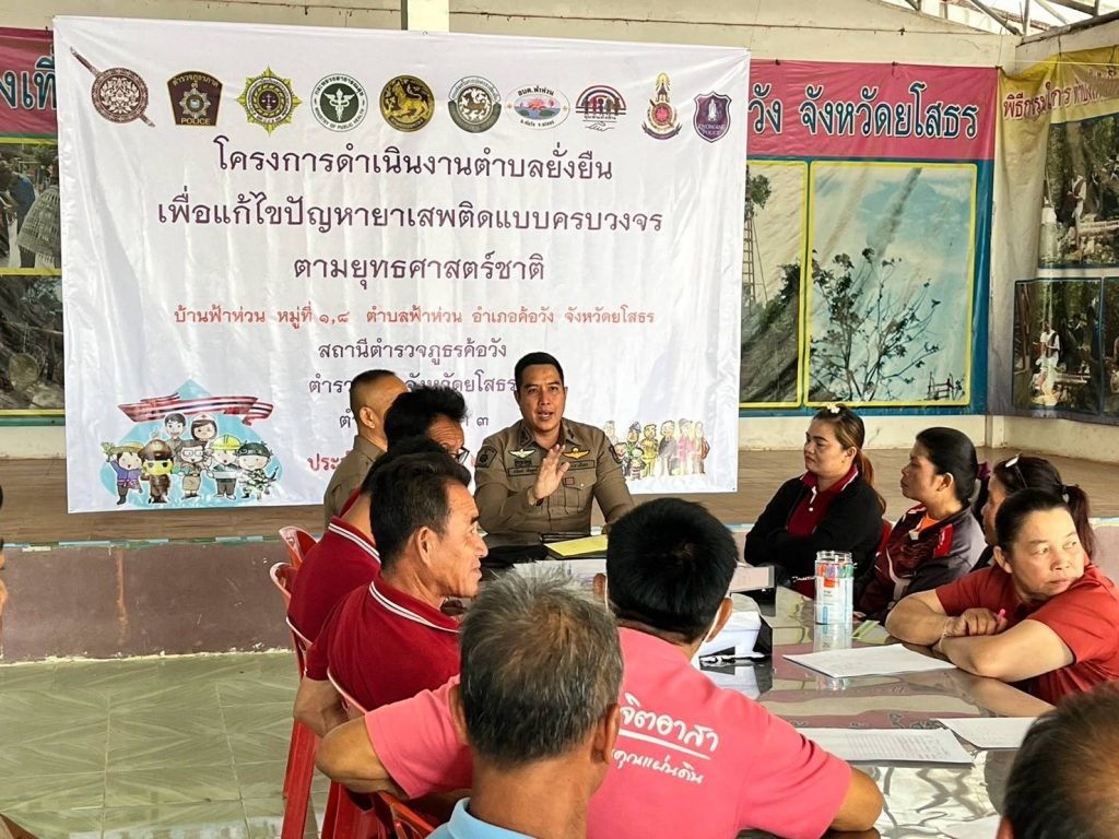 วันที่ 18 มี.ค.2568 เวลา 10.00 น. พ.ต.อ.สาโรจน์ เพ็ญสูตร์ ผกก.สภ.ค้อวังได้เดินทางมาตรวจเยี่ยมศูนย์ปฏิบัติการตำบลยั่งยืนฯ บ้านฟ้าห่วน หมู่ที่ 1,8 ต.ฟ้าห่วน อ.ค้อวัง จ.ยโสธร พบปะผู้นำชุมชน,คณะกรรมการหมู่บ้าน,กรรมการคุ้มสร้างความเข้าใจในโครงการฯ สร้างแรงจูงใจให้เข้าร่วมโครงการ พ.ต.ท.คมเพชร ปกติ รอง ผกก ป.สภ.ค้อวัง พร้อมด้วยชุดปฏิบัติการได้ทำการประชาคมชุดปฏิบัติการศูนย์ย่อยผู้นำชุมชน,คณะกรรมการหมู่บ้าน ลงนาม MOU ถึงการกำหนดแนวทางค้นหา x-ray ตามกระบวนการลงประชามติ ร่วมกันจัดเก็บข้อมูลลงระบบonline ณ ศูนย์ปฏิบัติการบ้านฟ้าห่วน