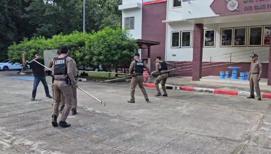 วันที่ 13 พ.ย.2567 เวลา 09.00 น. พ.ต.อ.สาโรจน์ เพ็ญสูตร์ ผกก.สภ.ค้อวัง , พ.ต.ท.เจริญชัย วะดี รอง ผกก.ป.ฯ สั่งการให้ พ.ต.ท.ศักดิ์สมบูรณ์ ขุนพรหม สวป.ฯ ร.ต.ท.นพปฏล บุญเต็ม รอง สว.(ป.)ฯ พร้อมชุดสายตรวจงานป้องกันปราบปราม ร่วมกันฝึกยุทธวิธีการใช้ไม้ง่ามระงับเหตุบุคคลคลุ้มคลั่ง, การจับกุม และการตรวจค้น ณ ลานหน้าอาคารที่ทำการ สภ.ค้อวัง