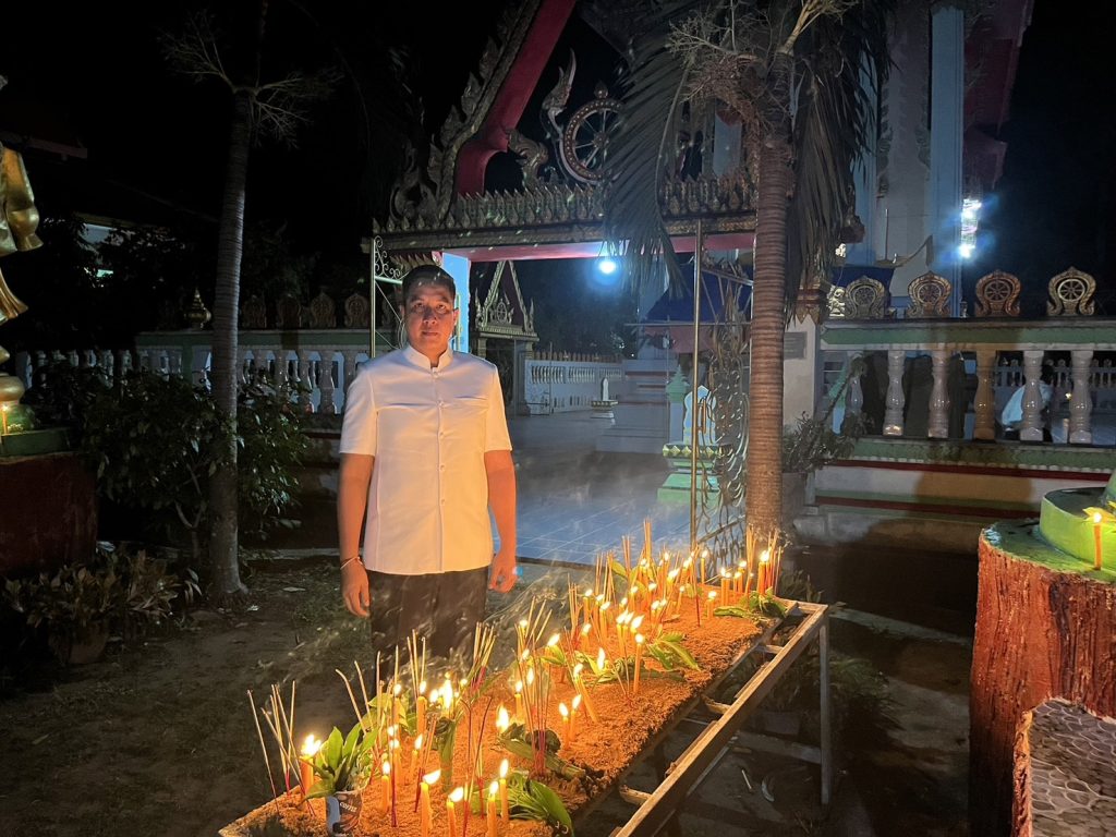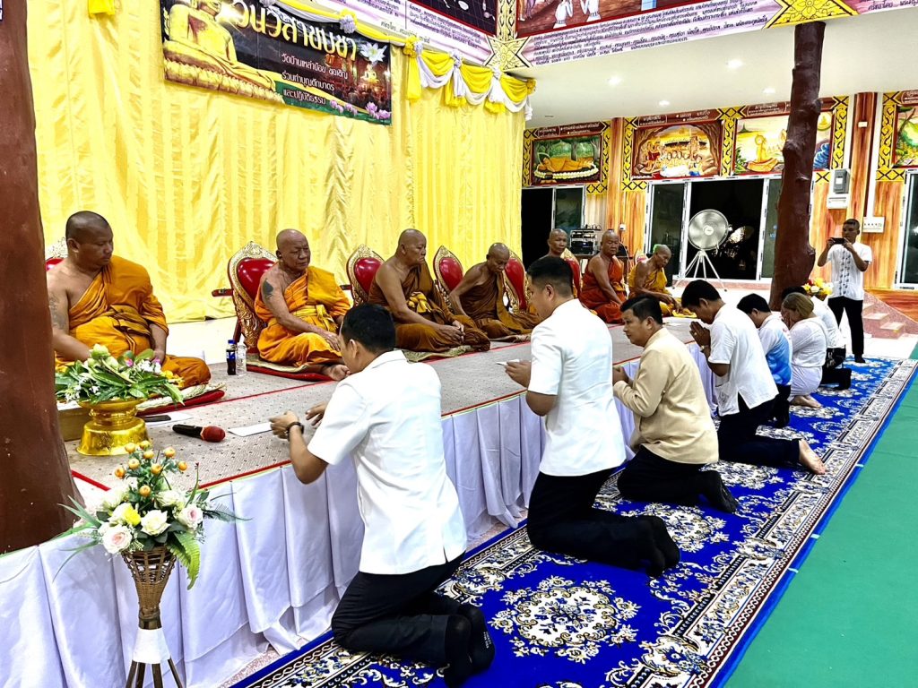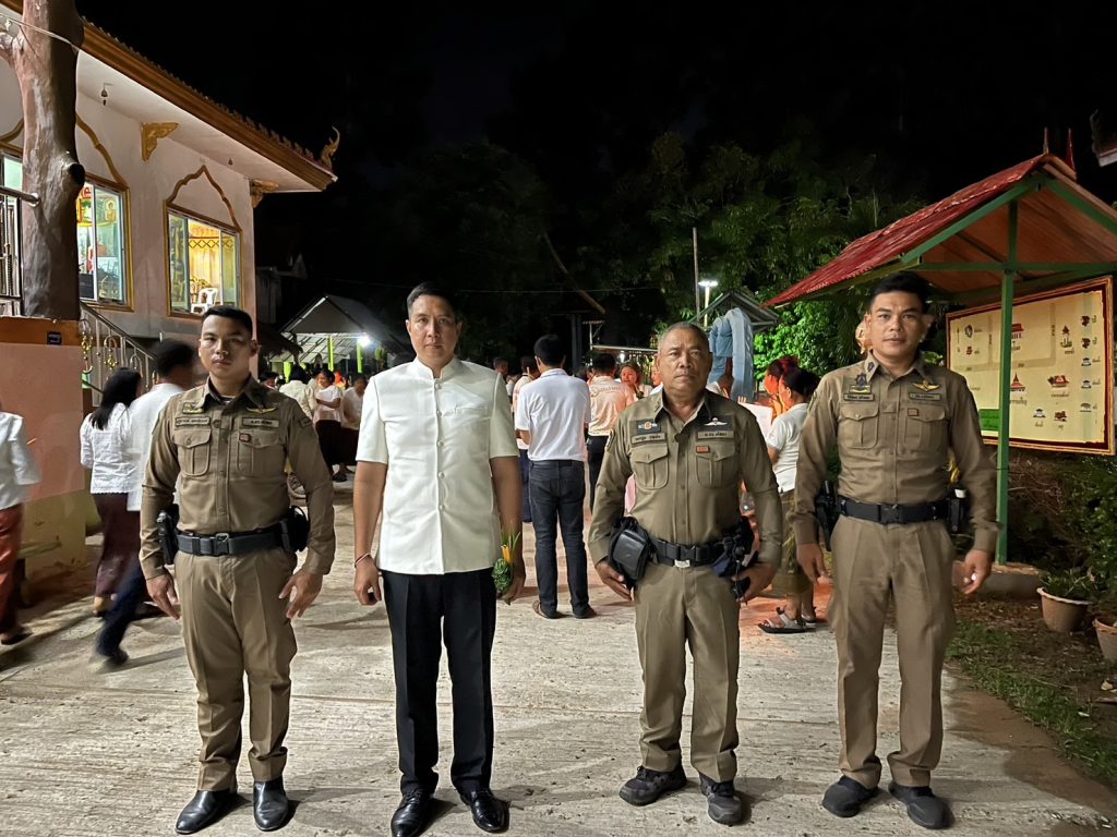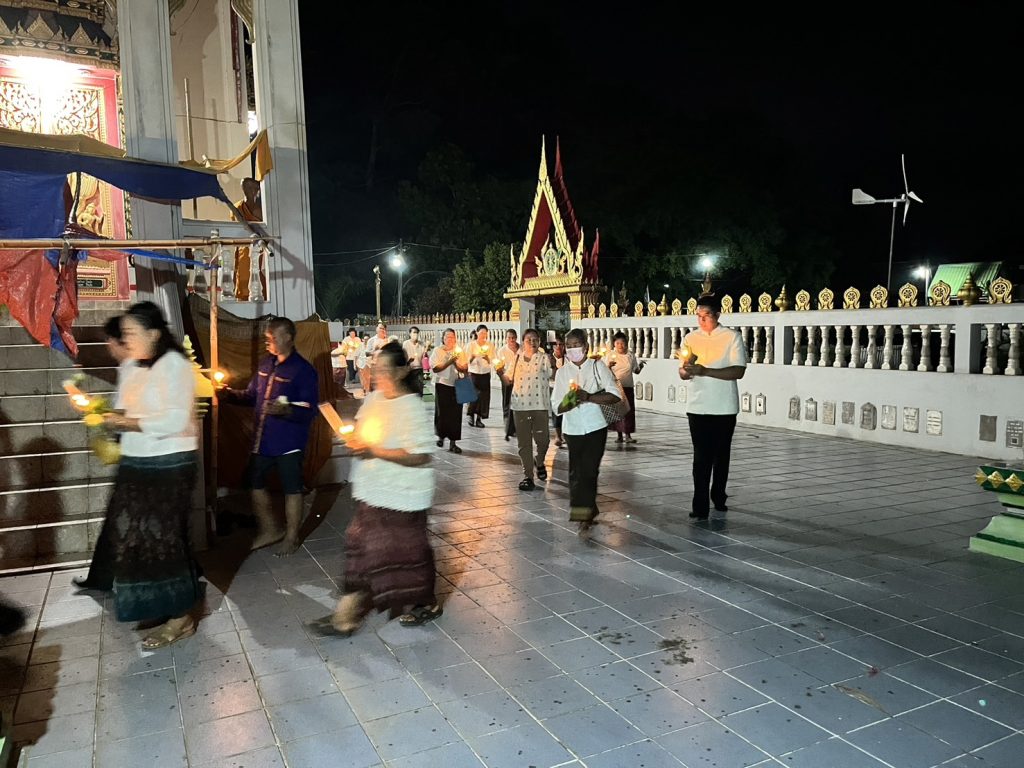 วันที่ 22 พ.ค.2567 เวลา 18.30 น. พ.ต.อ.สาโรจน์ เพ็ญสูตร์ ผกก.สภ.ค้อวัง พร้อมร้อยเวรป้องกันปราบปราม สายตรวจรถยนต์ ร่วมพิธีเจริญพระพุทธมนต์ เจริญจิตตภาวนา และเวียนเทียนเพื่อถวายเป็นพุทธบูชา เนื่องในวันวิสาขบูชา ประจำปี 2567 โดยมีนายสราวุธ นามสีลี นายอำเภอค้อวัง เป็นประธานฯ พร้อมด้วยหัวหน้าส่วนราชการ ผู้นำท้องถิ่น และประชาชนร่วมในพิธีฯ ณ วัดบ้านเหล่าน้อย ต.ค้อวัง อ.ค้อวัง จ.ยโสธร