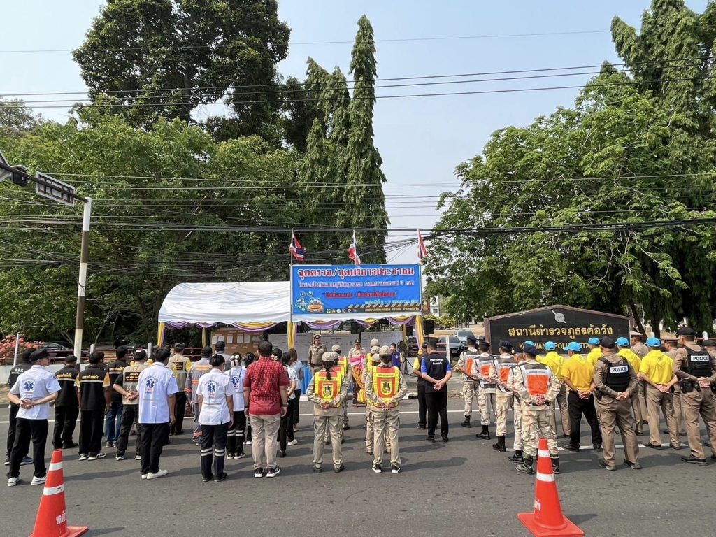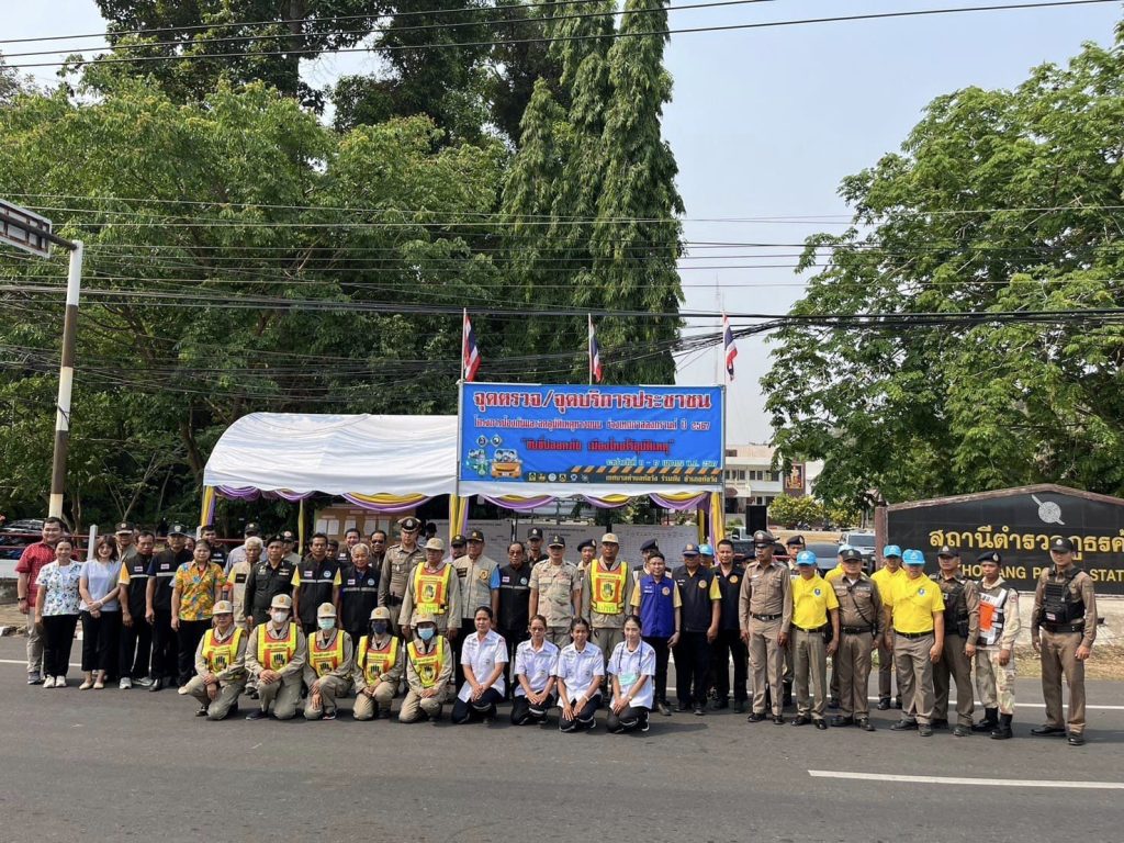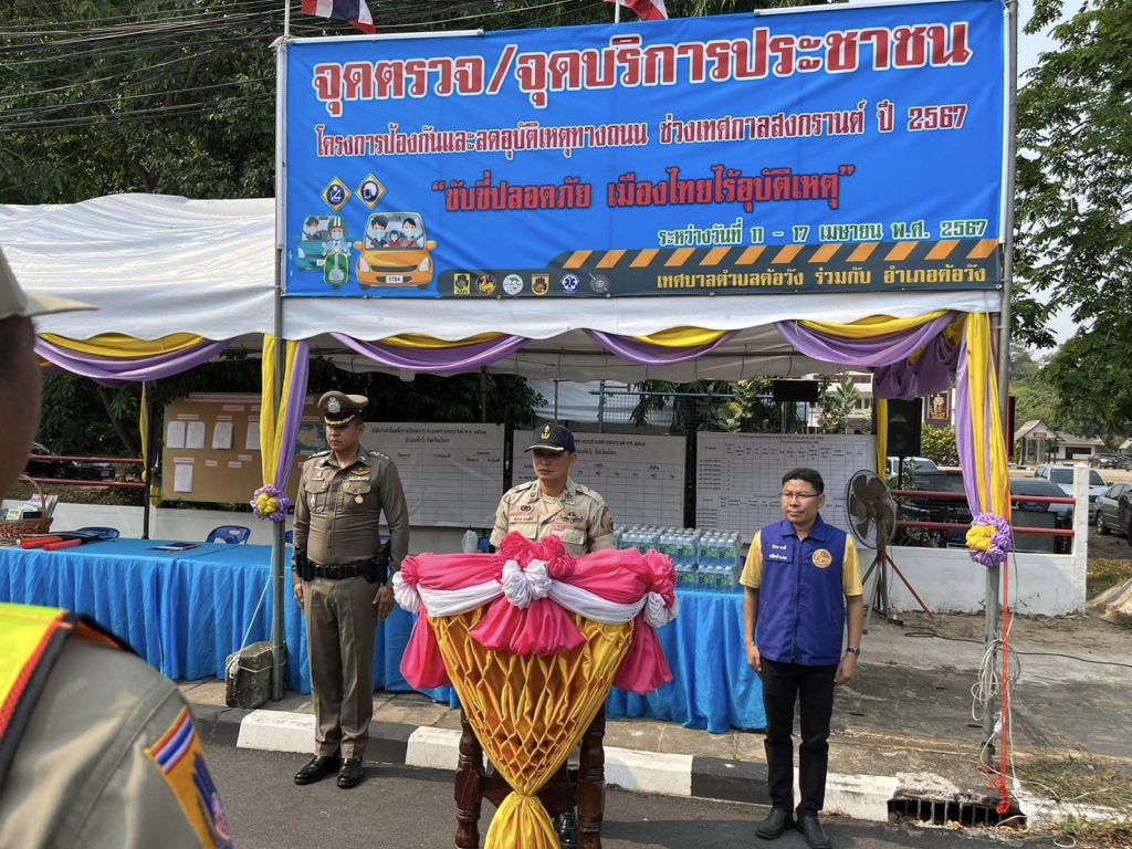 11 เม.ย.2567 เวลา 10.00 น. พ.ต.อ.สาโรจน์ เพ็ญสูตร์ ผกก.สภ.ค้อวัง พ.ต.ท.พลพิไชย พันธ์อินทร์ รอง ผกก.สส.สภ.ค้อวัง พ.ต.ท.ศักดิ์สมบูรณ์ ขุนพรหม สวป.สภ.ค้อวัง พ.ต.ท.ณรงค์ คำบุญ สว.อก.สภ.ค้อวัง พร้อมสายตรวจจราจร ข้าราชการตำรวจจิตอาสาร่วมกับหัวหน้าส่วนราชการ หัวหน้าหน่วยงานรัฐวิสาหกิจ เทศบาลตำบลค้อวัง เจ้าหน้าที่ฝ่ายปกครอง สาธารณสุข อปพร. ร่วมพิธีเปิดศูนย์ปฏิบัติการป้องกันและลดอุบัติเหตุทางถนนช่วงเทศกาลสงกรานต์ พ.ศ.2567 โดยมีนายสราวุธ นามสีลี นายอำเภอค้อวัง เป็นประธานฯ ณ จุดตรวจจุดบริการประชาชนช่วงเทศกาลสงกรานต์ 2567 หน้า สภ.ค้อวัง จ.ยโสธร