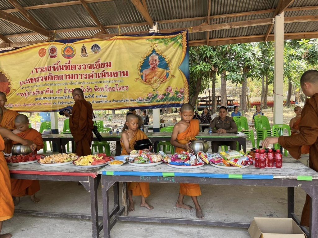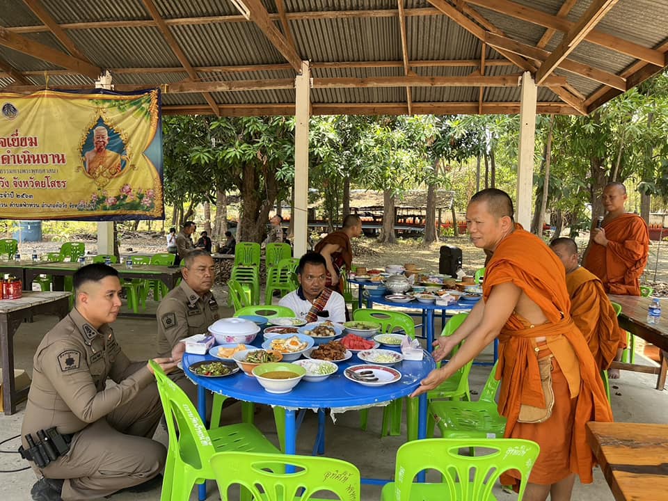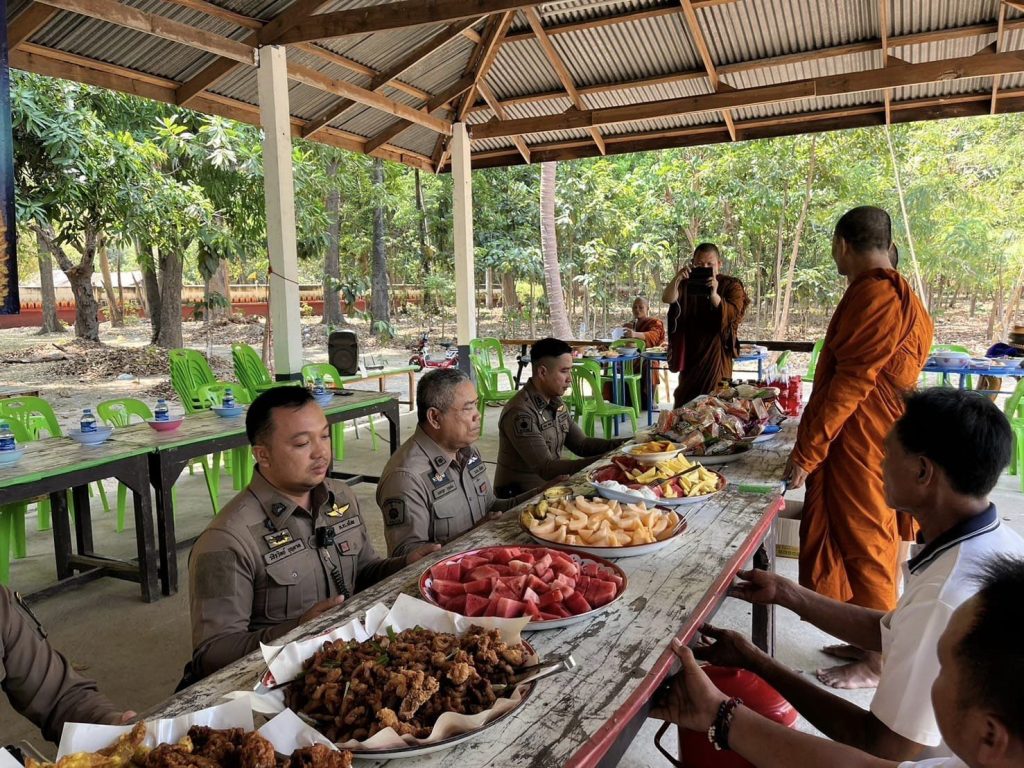 4 เม.ย.67 เวลา 11.00 น.พ.ต.อ.สาโรจน์ เพ็ญสูตร์ ผกก.สภ.ค้อวัง พร้อมร้อยเวรป้องกันปราบปราม สายตรวจรถยนต์ ร่วมเป็นเจ้าภาพถวายภัตตาหารเพลพระสงฆ์สามเณร ตามโครงการบรรพชาสามเณรภาคฤดูร้อน เฉลิมพระเกียรติพระบาทสมเด็จพระเจ้าอยู่หัว ในวโรกาสเจริญพระชนมพรรษา 6 รอบ 72 พรรษา และสมเด็จพระกนิษฐาธิราชเจ้า กรมสมเด็จพระเทพรัตนราชสุดาฯ สยามบรมราชกุมารี ของคณะสงฆ์ภาค 10 ระหว่างวันที่ 2 – 23 เมษายน 2567 ณ วัดฟ้าห่วนใต้ ต.ฟ้าห่วน อ.ค้อวัง จ.ยโสธร
