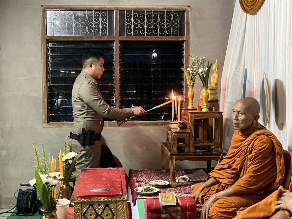 23 พ.ค.2567 เวลา 19.00 น. พ.ต.อ.สาโรจน์ เพ็ญสูตร์ ผกก.สภ.ค้อวัง พ.ต.ท.พลพิไชย พันธ์อินทร์ รอง ผกก.สส.ฯ พ.ต.ท.ณรงค์ คำบุญ สว.อก.ฯ พร้อมข้าราชการตำรวจในสังกัด ร่วมเป็นเจ้าภาพสวดอภิธรรมศพ นายทองสุข บุญโปร่ง กต.ตร.สภ.ค้อวัง และได้มอบเงินร่วมทำบุญกับครอบครัว ณ บ้านกวางคำ ต.เขื่องใน อ.เขื่องใน จ.อุบลราชธานี
