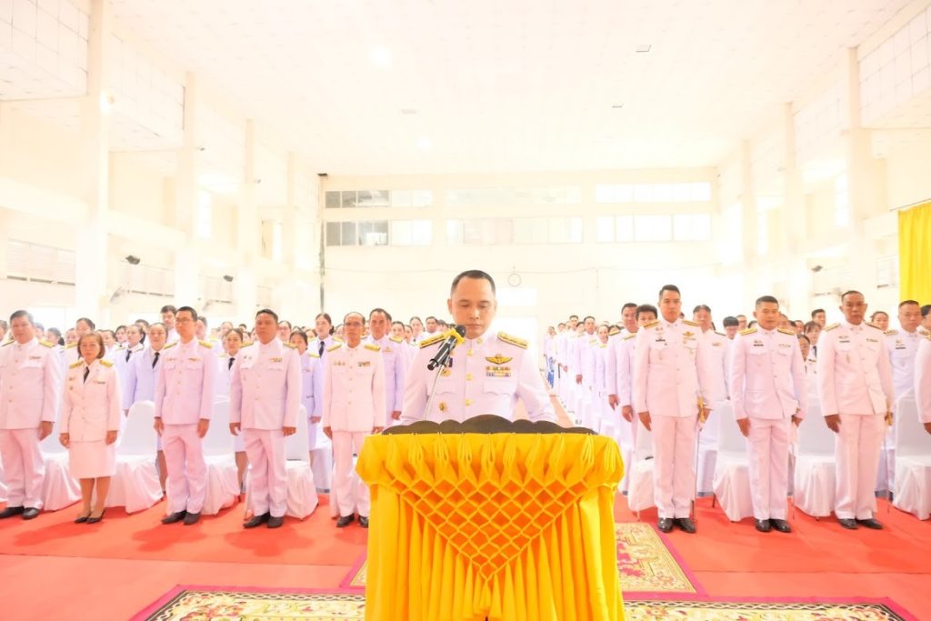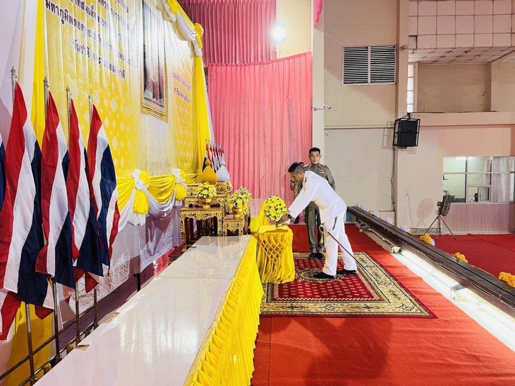 วันที่ 5 ธ.ค.2567 เวลา 07.30 น. พ.ต.อ.สาโรจน์ เพ็ญสูตร์ ผกก.สภ.ค้อวัง ,พ.ต.ท.ยงยุทธ ภูสมนึก รอง ผกก.(สอบสวน)สภ.ค้อวัง ,พ.ต.ท.ศักดิ์สมบูรณ์ ขุนพรหม สวป.สภ.ค้อวัง ,พ.ต.ท.ณรงค์ คำบุญ สว.อก.สภ.ค้อวัง พร้อมข้าราชการตำรวจจิตอาสา ร่วมพิธีเจริญพระพุทธมนต์ทำบุญตักบาตรถวายพระราชกุศล และพิธีถวายราชสักการะวางพานพุ่มดอกไม้ เนื่องในวันคล้ายวันพระบรมราชสมภพ พระบาทสมเด็จพระบรมชนกาธิเบศร มหาภูมิพลอดุลยเดชมหาราช บรมนาถบพิตร วันชาติ และวันพ่อแห่งชาติ 5 ธันวาคม 2567 ณ หอประชุมอำเภอค้อวัง จ.ยโสธร