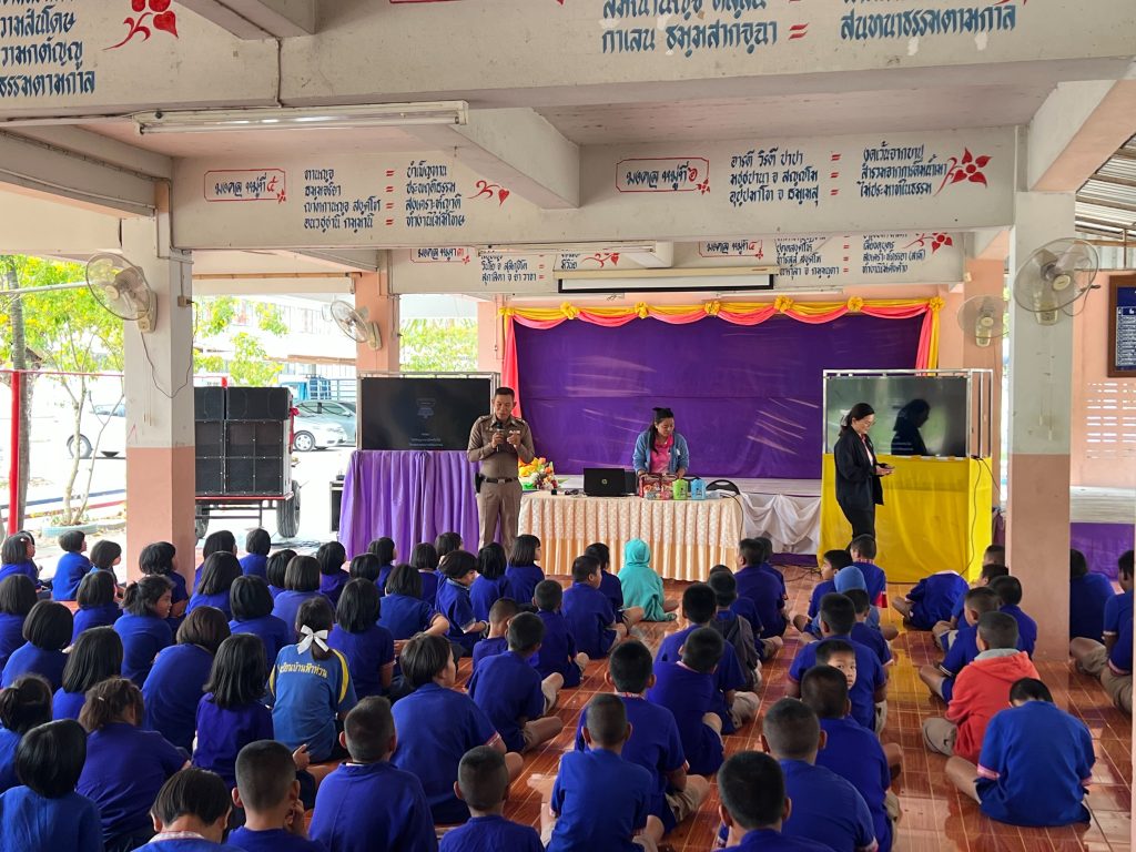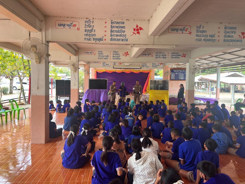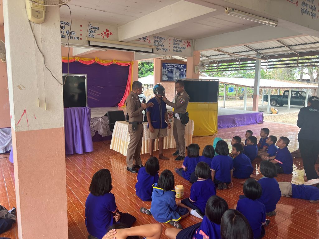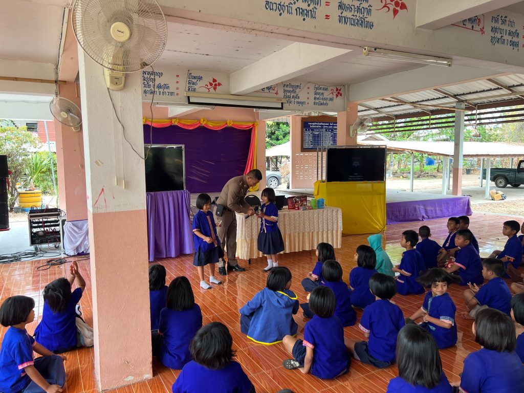 วันที่ 7 มี.ค.2568 เวลา 09.30 น. พ.ต.อ.สาโรจน์ เพ็ญสูตร์ ผกก.สภ.ค้อวัง, พ.ต.ท.คมเพชร ปกติ รอง ผกก.ป.ฯ, มอบหมายให้ พ.ต.ท.ณรงค์ คำบุญ สว.อก.ฯ พร้อมด้วยเจ้าหน้าที่ตำรวจจราจร ร่วมกันอบรมให้ความรู้กฎหมายจราจร ปลูกจิตสำนึกขับขี่ปลอดภัยสวมหมวกนิรภัย และโทษภัยที่เกิดจากบุหรี่ไฟฟ้า แก่เด็กนักเรียนโรงเรียนบ้านฟ้าห่วน อ.ค้อวัง จ.ยโสธร