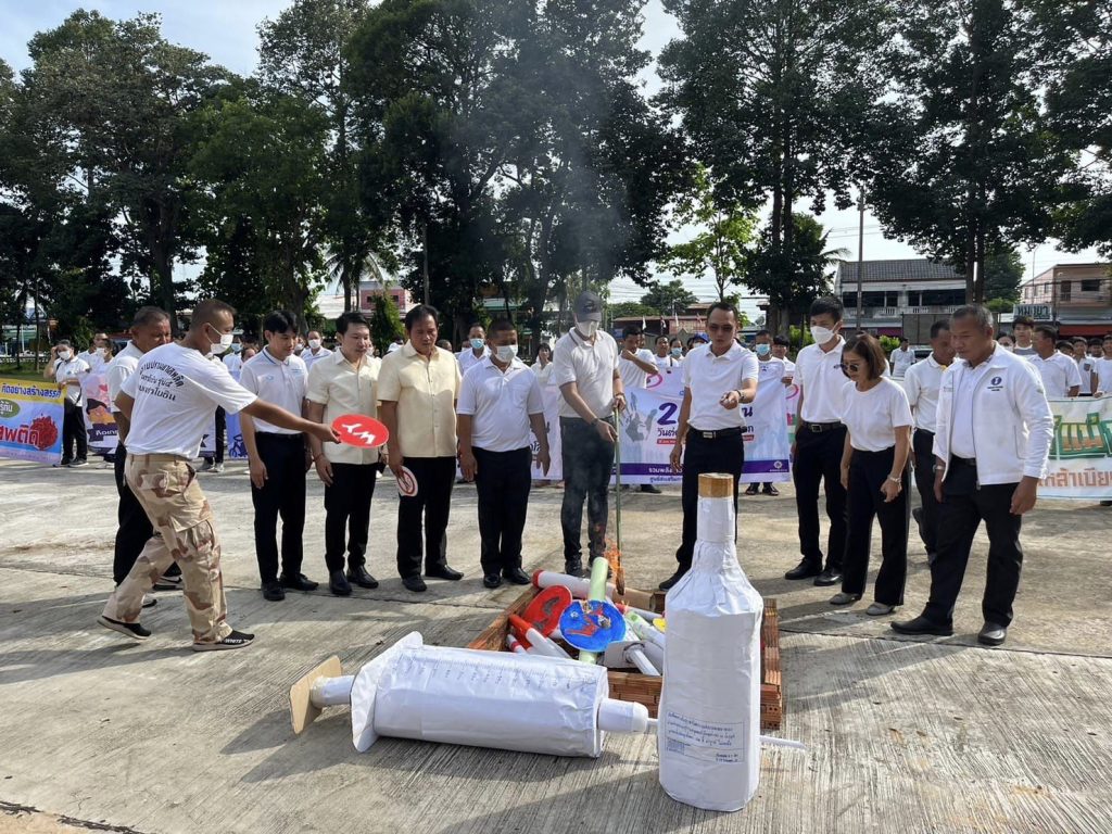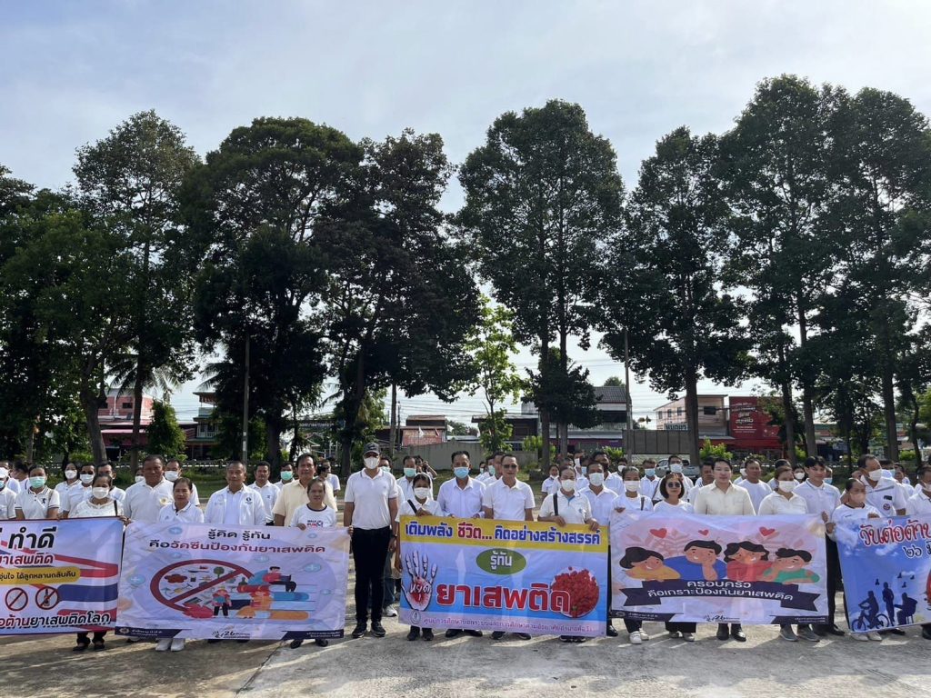 26 มิ.ย.66 เวลา 08.10 น. พ.ต.อ.สาโรจน์ เพ็ญสูตร์ ผกก.สภ.ค้อวัง พร้อม พ.ต.ท.วีระชาติ นามวาท สวป.ฯ ว่าที่ พ.ต.ต.อดุลย์ กลิ่นศรีสุข สว.สส. และเจ้าหน้าที่ตำรวจ ร่วมเดินรณรงค์และทำกิจกรรมเผาทำลายสิ่งเสพติด เนื่องในวันต่อต้านยาเสพติดโลก โดยมีนายสราวุธ นามสีลี นายอำเภอค้อวัง เป็นประธานฯ พร้อมหัวหน้าส่วนราชการ นักเรียน และพี่น้องประชาชน ร่วมกิจกรรม ณ สนามหน้าที่ว่าการอำเภอค้อวัง ต.ค้อวัง อ.ค้อวัง จ.ยโสธร