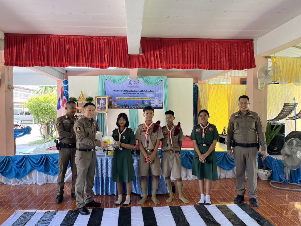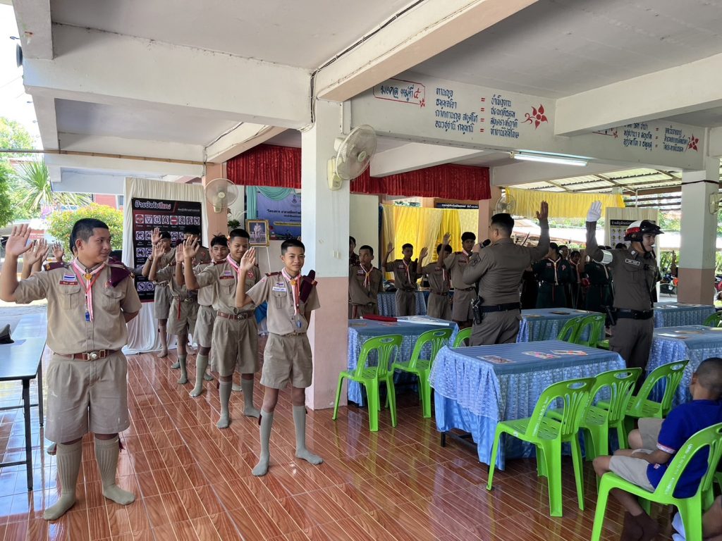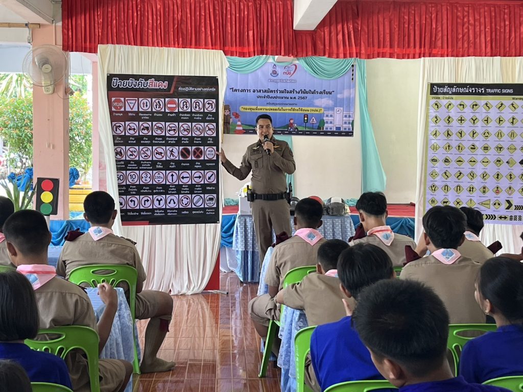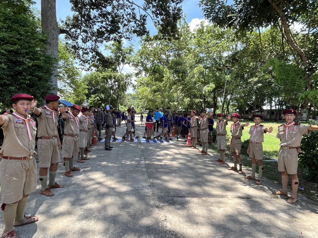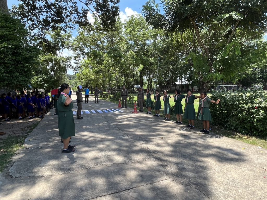วันที่ 9 ส.ค.2567 วลา 09.00 น. พล.ต.ต.ภิรมย์ สวนทอง ผบก.ภ.จว.ยโสธร พ.ต.อ.อานุภาพ ผิวอ่อน รอง ผบก.ภ.จว.ยโสธร ได้มอบหมายให้ พ.ต.อ.สาโรจน์ เพ็ญสูตร์ ผกก.สภ.ค้อวัง พร้อมด้วย พ.ต.ท.เจริญชัย วะดี รอง ผกก.ป.ฯ, พ.ต.ท.ณรงค์ คำบุญ สว.อก.ฯ พร้อมด้วย ร้อยเวรจราจร และ สายตรวจจราจร สภ.ค้อวัง เป็นวิทยากรให้ความรู้ตาม”โครงการ อาสาสมัครร่วมใจสร้างวินัยในโรงเรียน” มีการอบรมให้ความรู้กฎหมายจราจรเบื้องต้น การให้สัญญาณจราจร การเป่านกหวีด การสวมหมวกนิรภัย การเตรียมความพร้อมในการขับขี่ การจำลองการปฏิบัติหน้าที่อาสาจราจร การฝึกปฏิบัติหน้าสถานศึกษา จำนวนผู้เข้าร่วมอบรม 100 คน ณ โรงเรียนบ้านฟ้าห่วน อ.ค้อวัง จ.ยโสธร