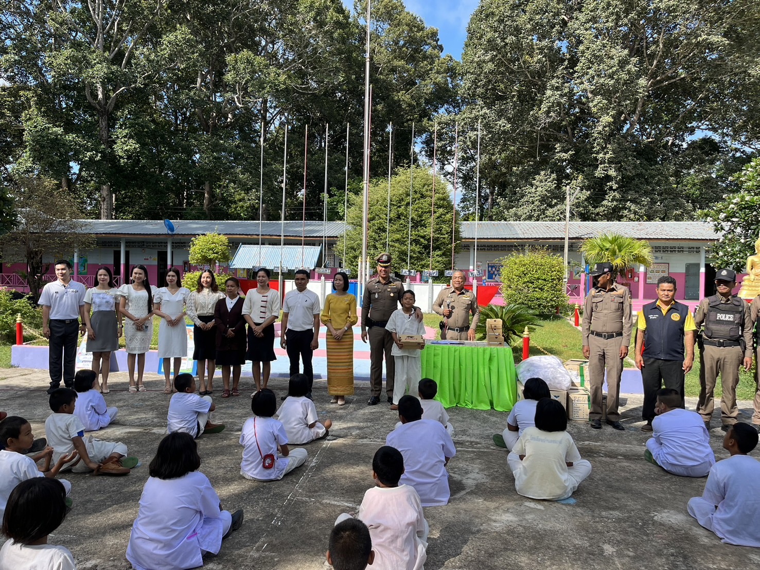 มอบรองเท้านักเรียนและถุงเท้าให้กับนักเรียน รร.บ้านดงมะหรี่ วันที่ 5 ก.ค.2567 เวลา 08.30 น. พ.ต.อ.สาโ