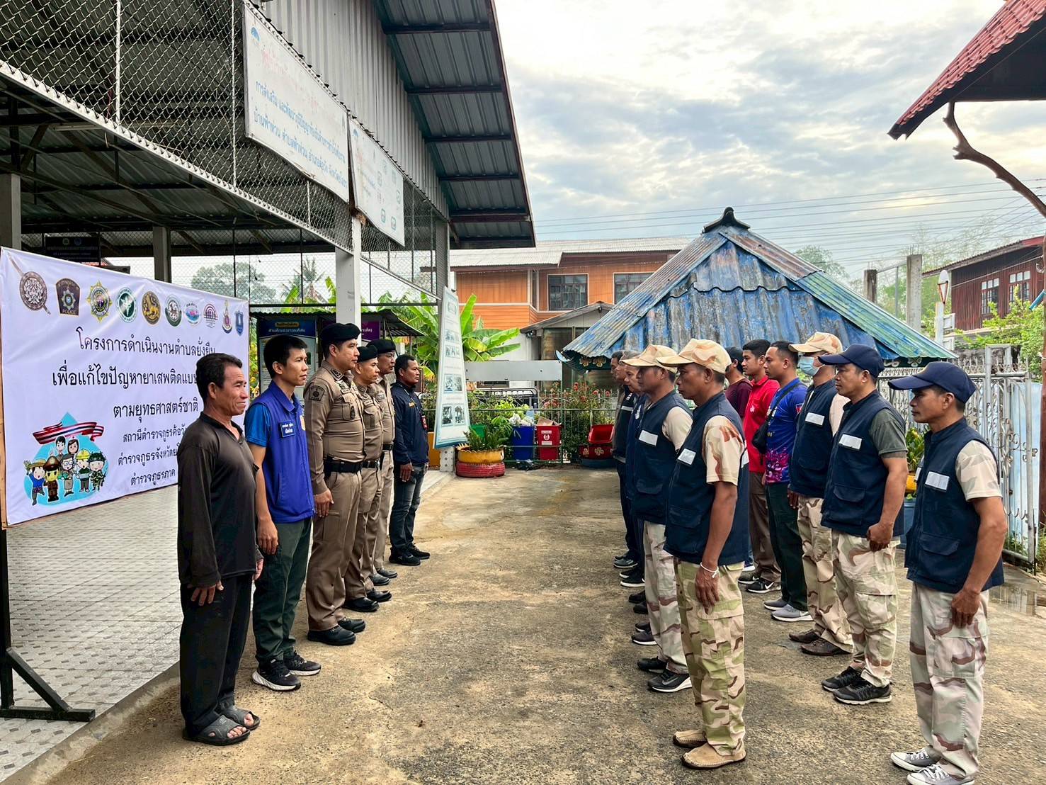 ค้นหาผู้เสพและผู้สมัครใจผู้ที่เกี่ยวข้องกับยาเสพติดเข้าร่วมโครงการในหมู่บ้านตำบลยั่งยืน วันที่ 10 เม
