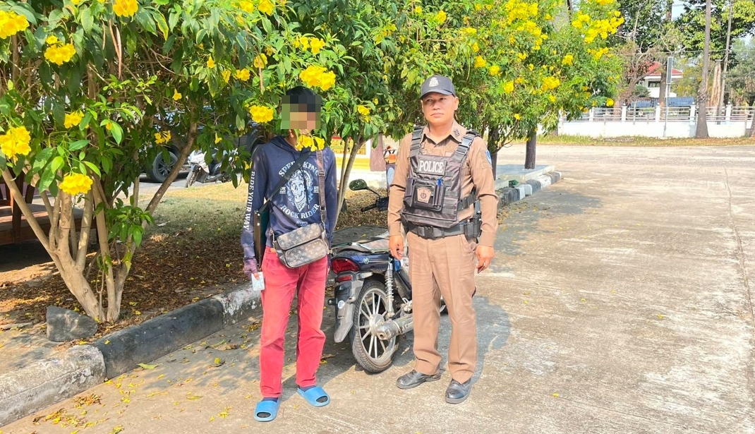 จับกุมตัวผู้ต้องหาเสพยาเสพติด วันที่ 13 มี.ค.2568 พ.ต.อ.สาโรจน์ เพ็ญสูตร์ ผกก.สภ.ค้อวัง ,พ.ต.ท.คมเพช