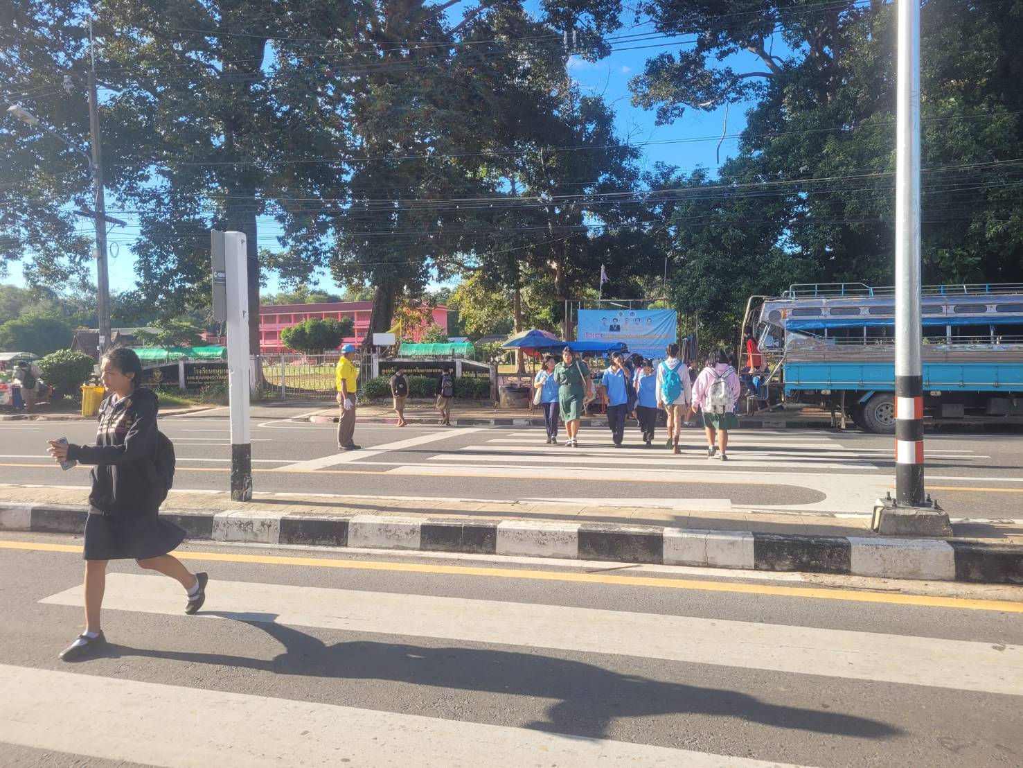 อำนวยความสะดวกการจราจร และจัดการจราจรการจอดรถบริเวณหน้าโรงเรียน และร้านสะดวกซื้อ