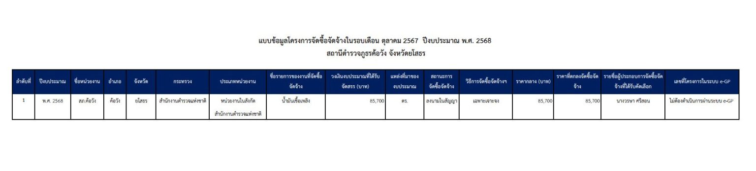 สรุปผลการจัดซื้อจัดจ้างเดือน ตุลาคม 2567
