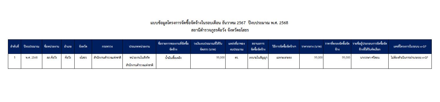 สรุปผลการจัดซื้อจัดจ้างเดือน ธันวาคม 2567