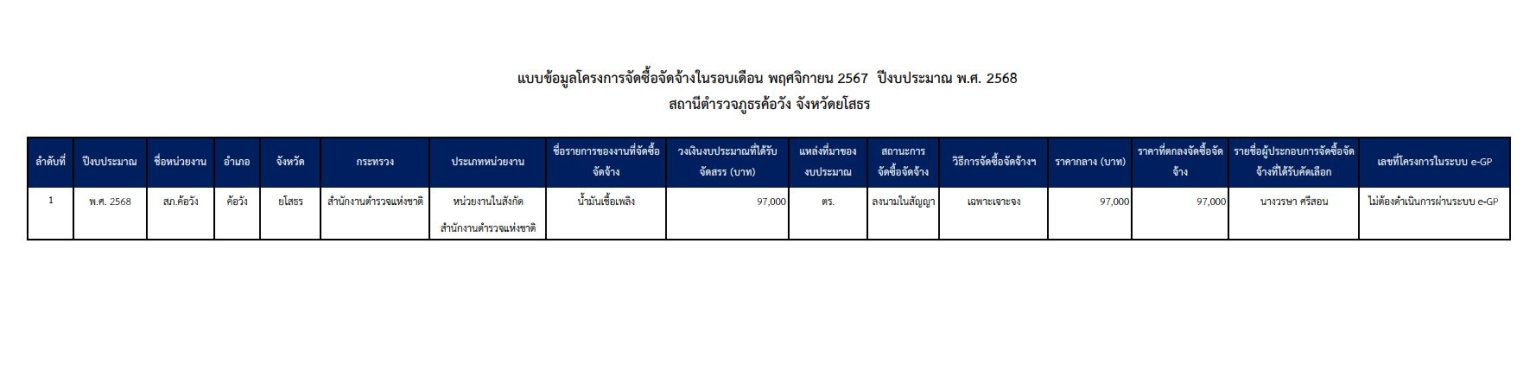 สรุปผลการจัดซื้อจัดจ้างเดือน พฤศจิกายน 2567