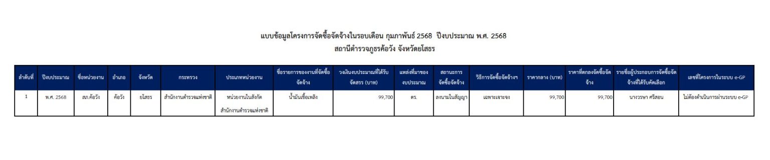 สรุปผลการจัดซื้อจัดจ้างเดือน กุมภาพันธ์ 2568