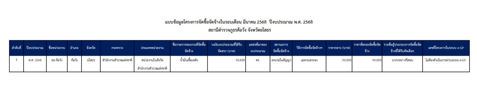 สรุปผลการจัดซื้อจัดจ้างเดือน มีนาคม 2568